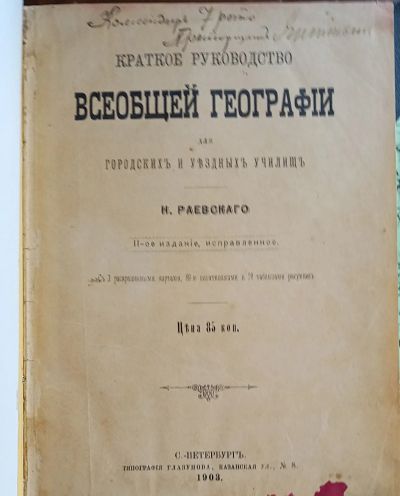 Краткое руководство Всеобщей географии для городских и уездных училищ Н.Раевского.* 1903 год издания. *