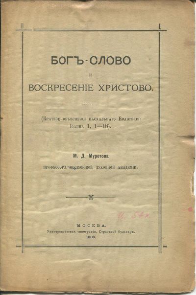М.Д.Муретов. Бог-Cлово и Воскресение Христово (краткое объяснение Пасхального Евангелия : Иоанна 1, 1-18).* 1903 год издания.*