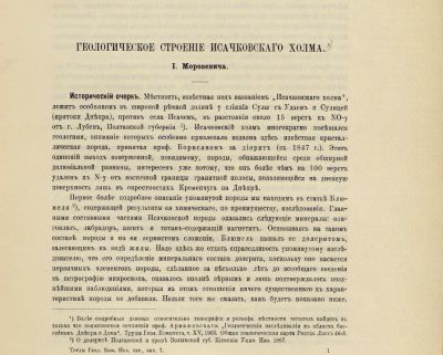 И.Морозевич. Геологическое строение Исачковского холма.* 1903 год издания.* Из книг Н.А.Кулика.*