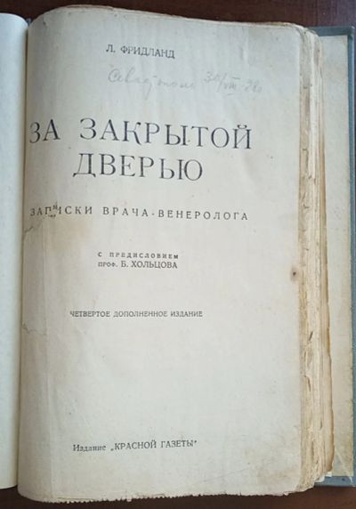 Л.Фридланд. За закрытой дверью. Записки врача венеролога.* 1928 год издания. * редкое издание.*