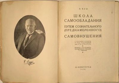 Э.Куэ. Самовнушение. Школа самообладания путем сознательного (преднамеренного) самовнушения.* 1929 год издания. * эффект плацебо.*